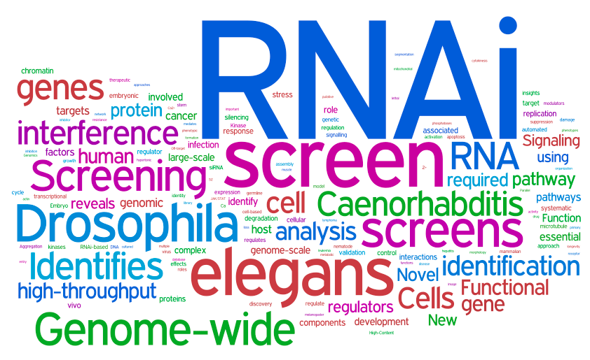 RNAi wordle | Wordle based on the titles of 288 matches for “rnai screen*” on PubMed: http://www.wordle.net/show/wrdl/1184281/RNAi_screens_on_PubMed