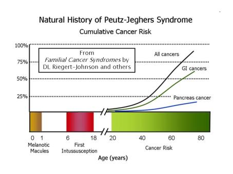 PJS increases the cumulative risk of several cancers https://commons.wikimedia.org/wiki/File:PJS_Natural_History.jpg