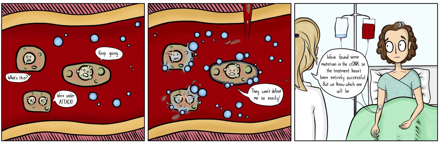 Header Image: Beth Rogoyski. See Beth’s original article for OncoBites, on liquid biopsies, from August 2018. ctDNA stands for circulating tumor DNA.
