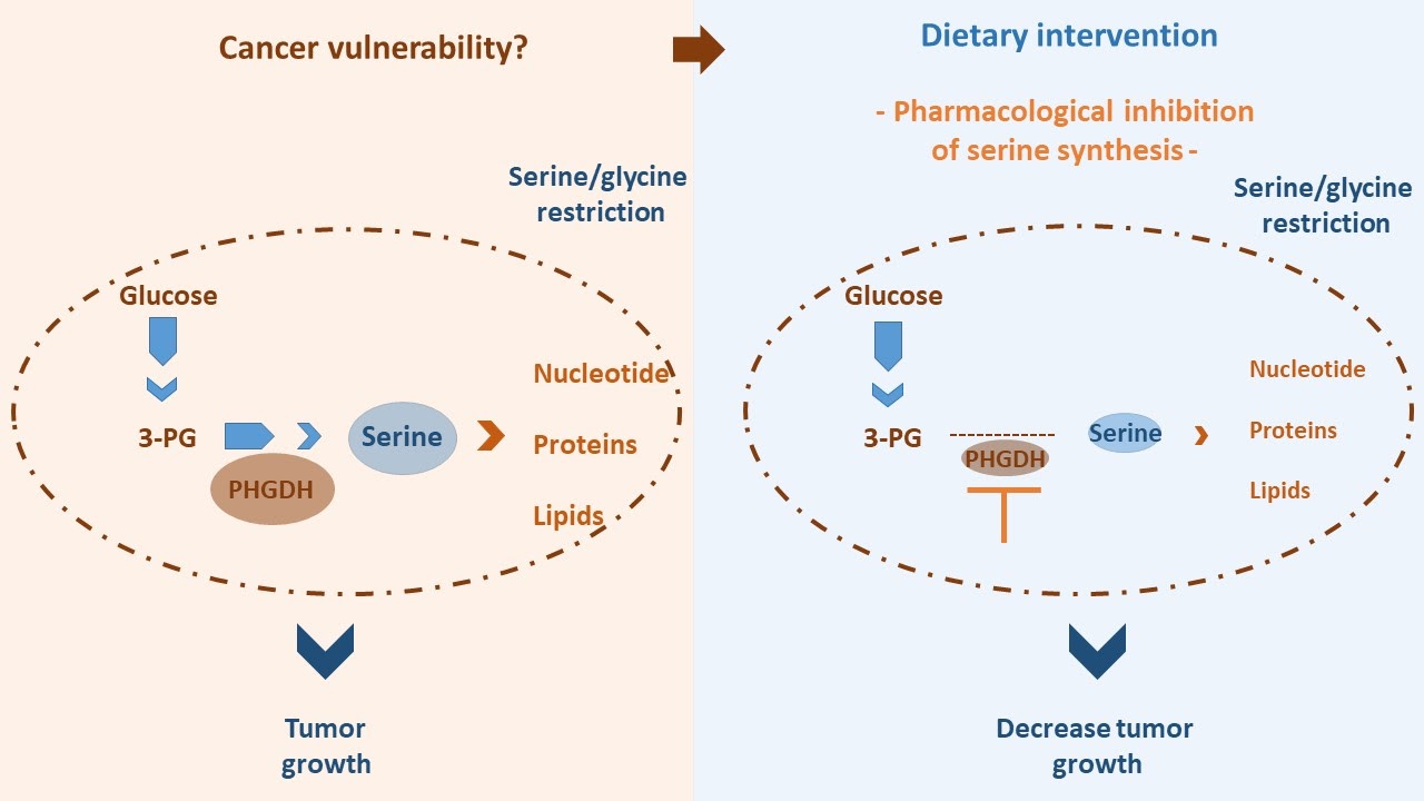 The synthesis of serine from 3-phosphoglycerate, one of the steps of glucose degradation pathway (glycolysis), is highly controlled by the enzyme 3-phosphoglycerate dehydrogenase (PHGDH). This enzymatic reaction is central to support serine synthesis. In the same study, the pharmacologic inhibition of the enzyme PHGDH decreased brain metastasis and improved mice survival, without affecting extracranial tumor growth. This result highlights the dependency of brain metastasis on the serine synthesis pathway. Such a pharmacological strategy might have a potential therapeutic application, since the enzyme PHGDH was defined by the authors as a major driving factor of brain metastasis in different human cancer types.