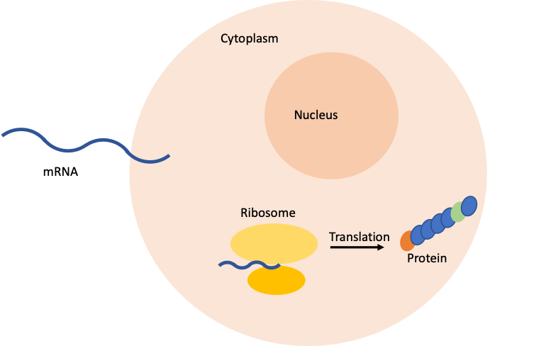 A strand of synthetic mRNA goes into the cell and the corresponding protein is made by the ribosomes (Figure 1). These proteins get taken up by dendritic cells (cells that can display part of the foreign protein to immune cells to educate them) that break down the proteins into smaller fragments known as peptides. These peptide-antigens then get displayed to immune cells such as T cells. T cells can signal B cells to differentiate into plasma cells that produce antibodies that are specific to the foreign protein. In other words, the peptide fragments generated from the synthetic mRNA are recognized by the immune system as foreign and T cells kill the infected cells. Further, immune cells that are activated by an antigen can provide memory so that in case the foreign substance comes back, the immune system is ready to attack!