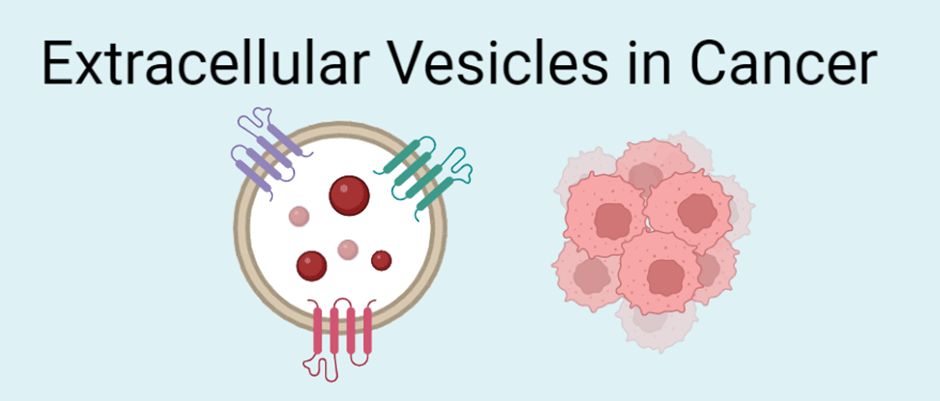 EVs have been linked to numerous roles within cancer (Image 2). Researchers have found that EVs can promote cancer progression. Cancer cells survive in poor conditions where there is a lack of nutrients and oxygen to grow. The exchange of EVs between cancer cells may enable the passing of important and potentially beneficial cargo to other cancer cells. The transfer of EVs under these stressful conditions may promote the survival and growth of these cancerous cells.