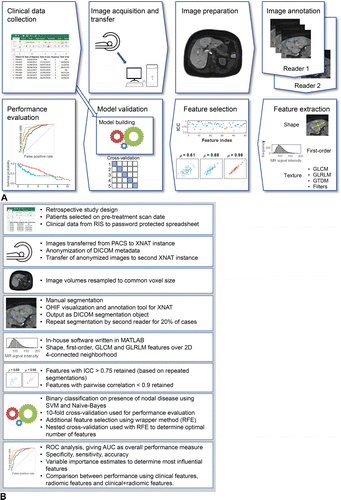 - Model development and validation: Statistical models use radiomic and clinical features to predict study endpoints like tumor type or survival time. Their performance and generalizability are assessed by validating them on new test data.